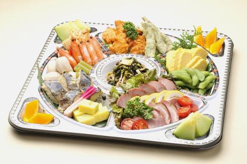 お子様や女性に人気で、会社の会議等でもよく利用されるお弁当です。低価格ながら、八寸、和え物、天麩羅、焚き合せ、御飯、フルーツが入った盛りだくさんの内容。日本の仕出し料理の雰囲気を味わうことができます。